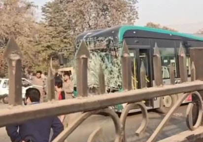A BRT bus accident occurred between the University of Peshawar and Islamia College stations after the driver fell ill suddenly, according to Trans Peshawar officials.